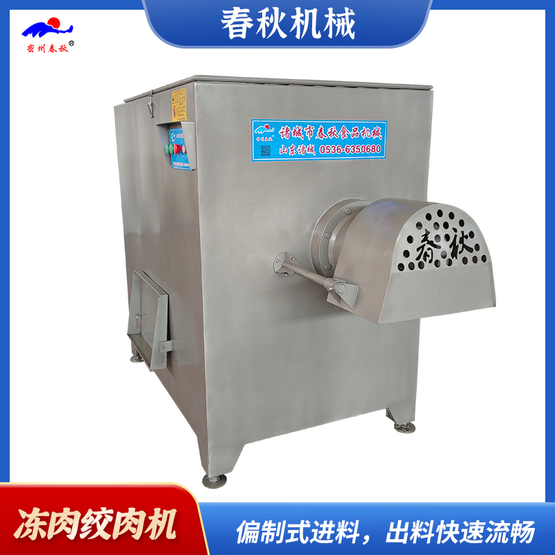绞肉机特点是肉类加工企业在生产过程中,将原料肉按不同工艺要求加工规格不等的颗粒状肉馅,以便于同其它辅料充分混合来满足不同产品的需求绞肉机为系列产品;工作时利用转动的切刀刃和孔板上孔眼刃形成的剪切作用将原料肉切碎,并在螺杆挤压力的作用下,将原料不断排出机外。可根据物料性质和加工要求的不同,配置相应的刀具和孔板,即可加工出不同尺寸的颗粒,以满足下道工序的工艺要求。绞肉机是肉类加工企业在生产过程中将原料肉按不同工艺要求加工规格不等的颗粒状肉馅。